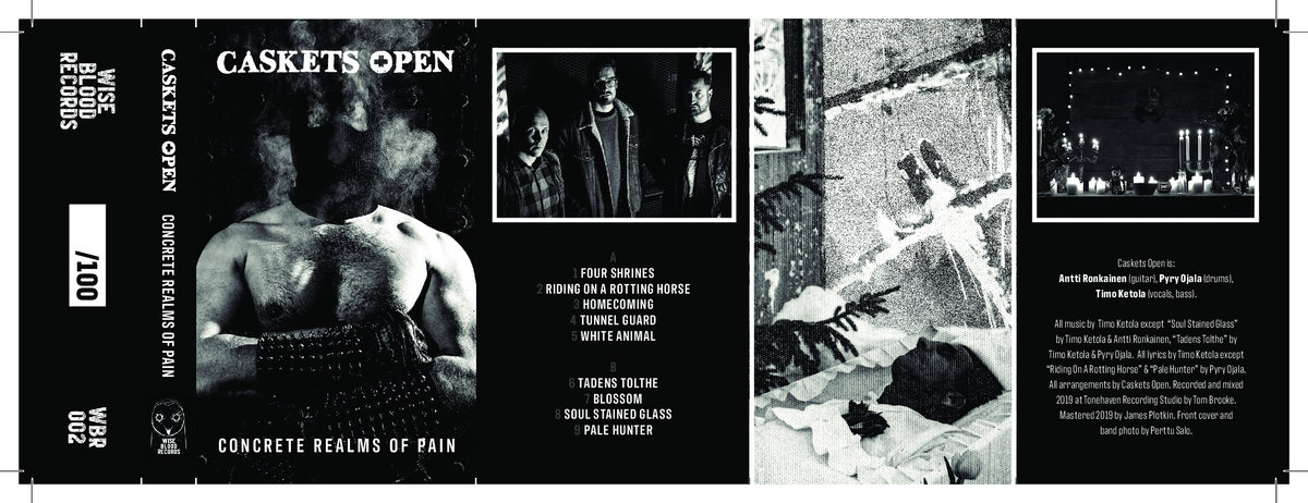 For 14 years, Finnish doom trio Caskets Open have written songs rife with strife and dark-souled riffs. Their fourth LP "Concrete Realms of Pain" emerged from the wasteland of a pandemic summer as the band's brooding masterwork. Bonded by a mutual love for this album, Seeing Red Records and Wise Blood Records have brought the songs stateside to celebrate this stunning doom achievement.